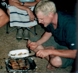 Und er unterhält sich da grad mit seinen Chevapcici, denen er liebevolle Namen wie Bärbel, Klaus Dieter usw. gegeben hat.